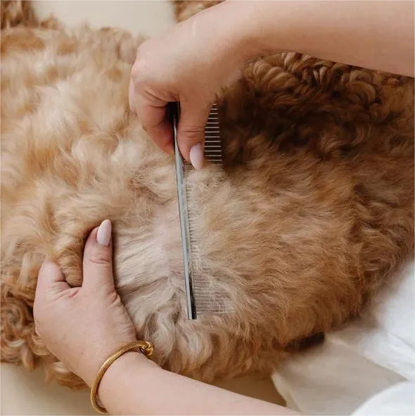 This comb belongs to a high-quality line of essential grooming tools, crafted to the same standards professionals use. The line was developed by three experts: a cosmetology professional, a professional dog breeder, and a long-time dog owner. It’s especially perfect for owners of long-haired dogs or doodles — those who want their pets to look and feel great, while extending the time between professional grooming appointments.