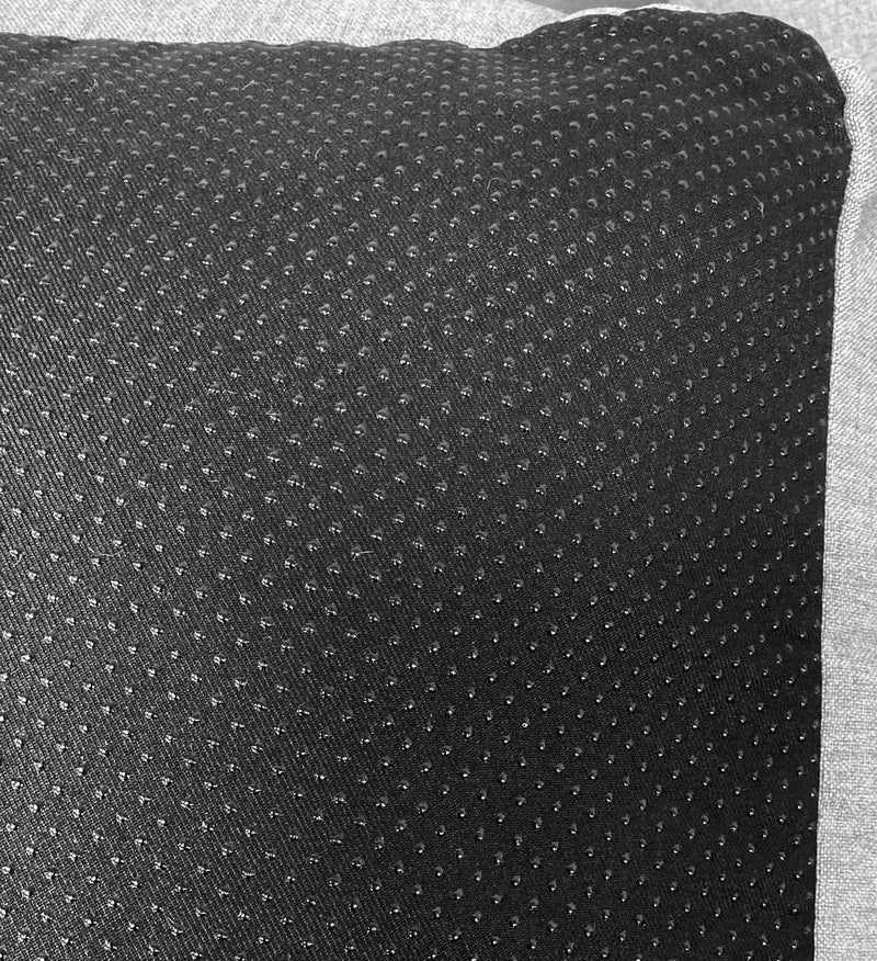 This bed features a refined charcoal and white engineered stripe cotton on one side, solid plush taupe faux fur on the other, and gripper fabric on the base for added stability. The inner cushion is reversible and removable—with engineered stripe on one side and faux fur on the other. This style coordinates with a hideaway bed, donut bed, and bandana from the same collection.